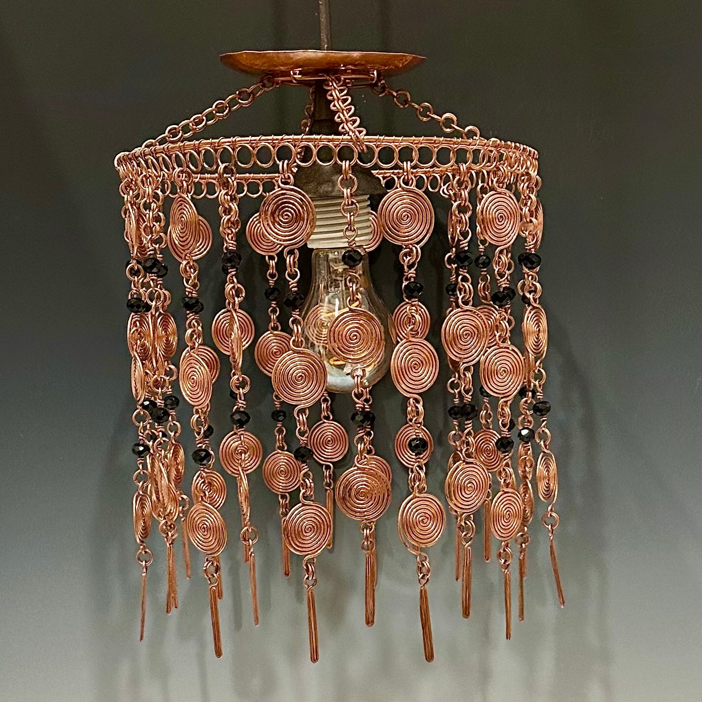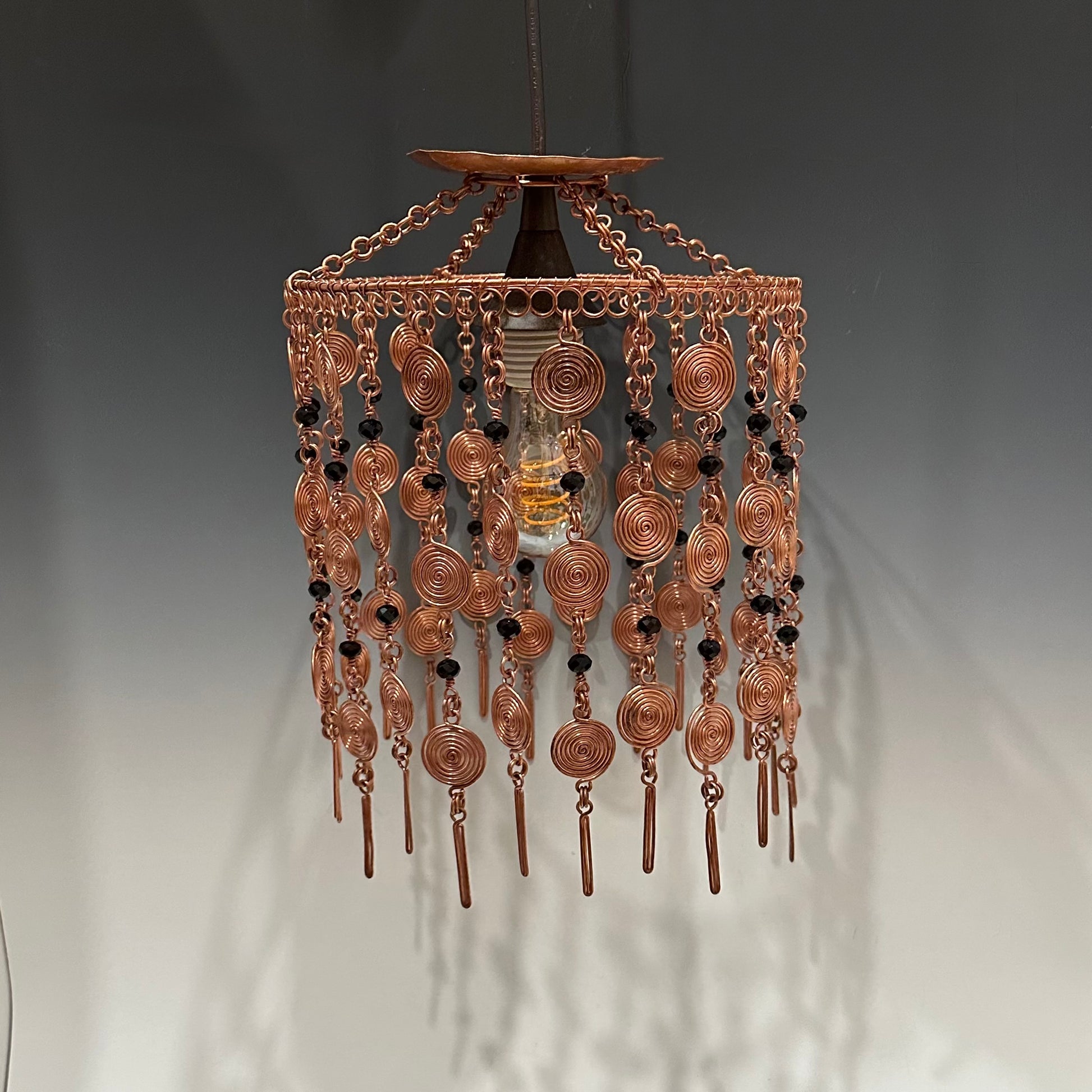 Handmade lamp shade with black stones