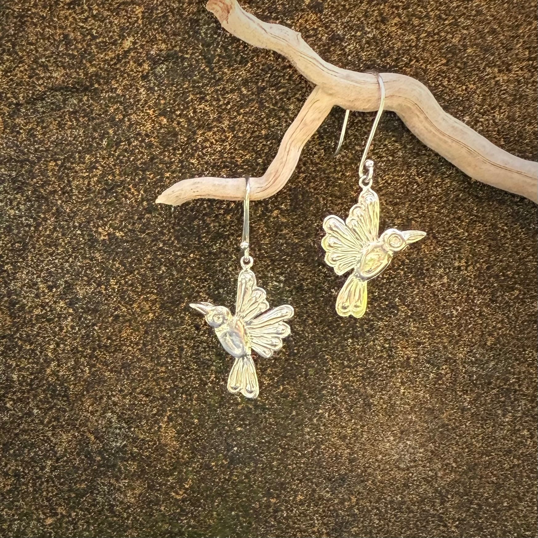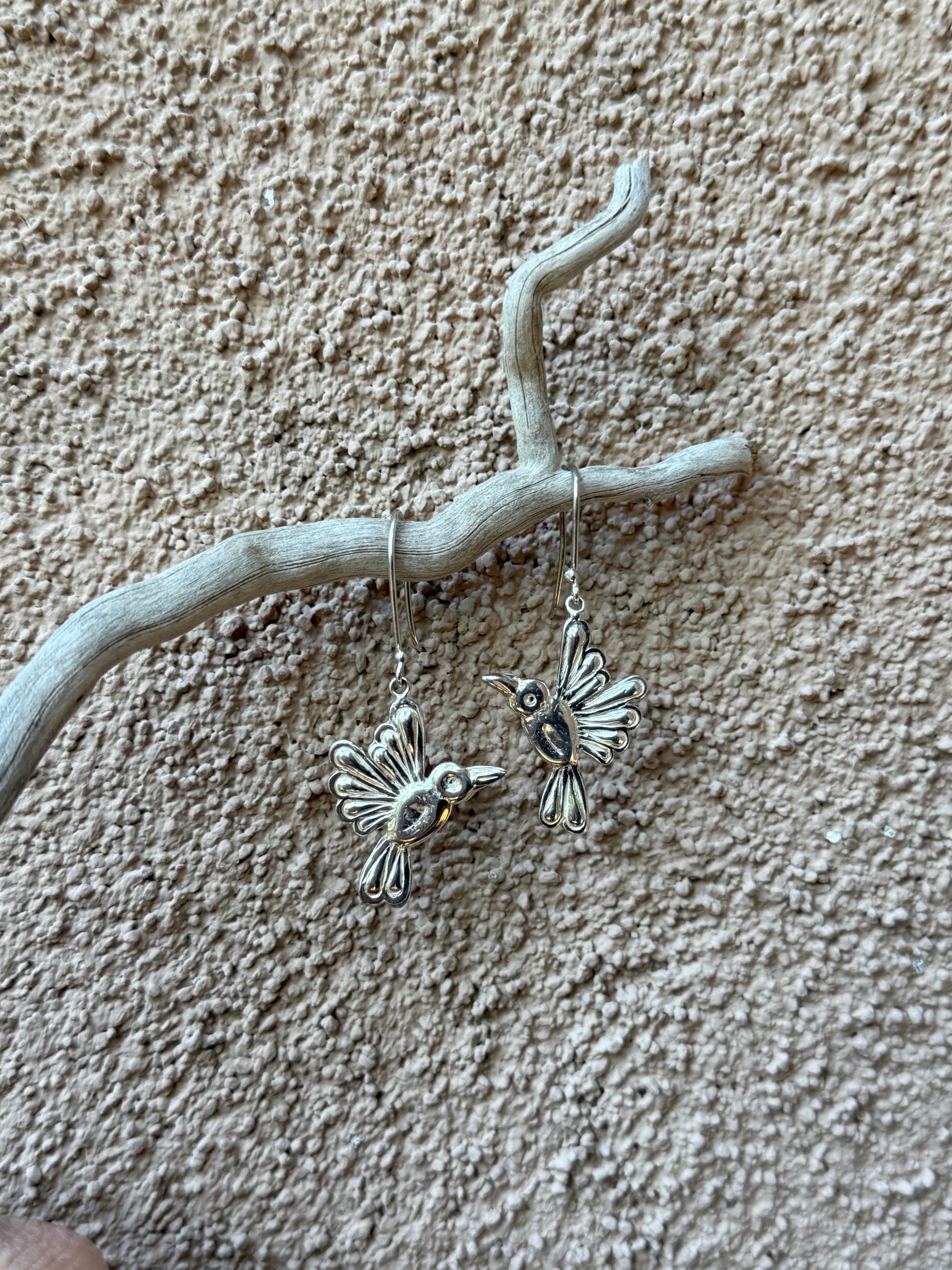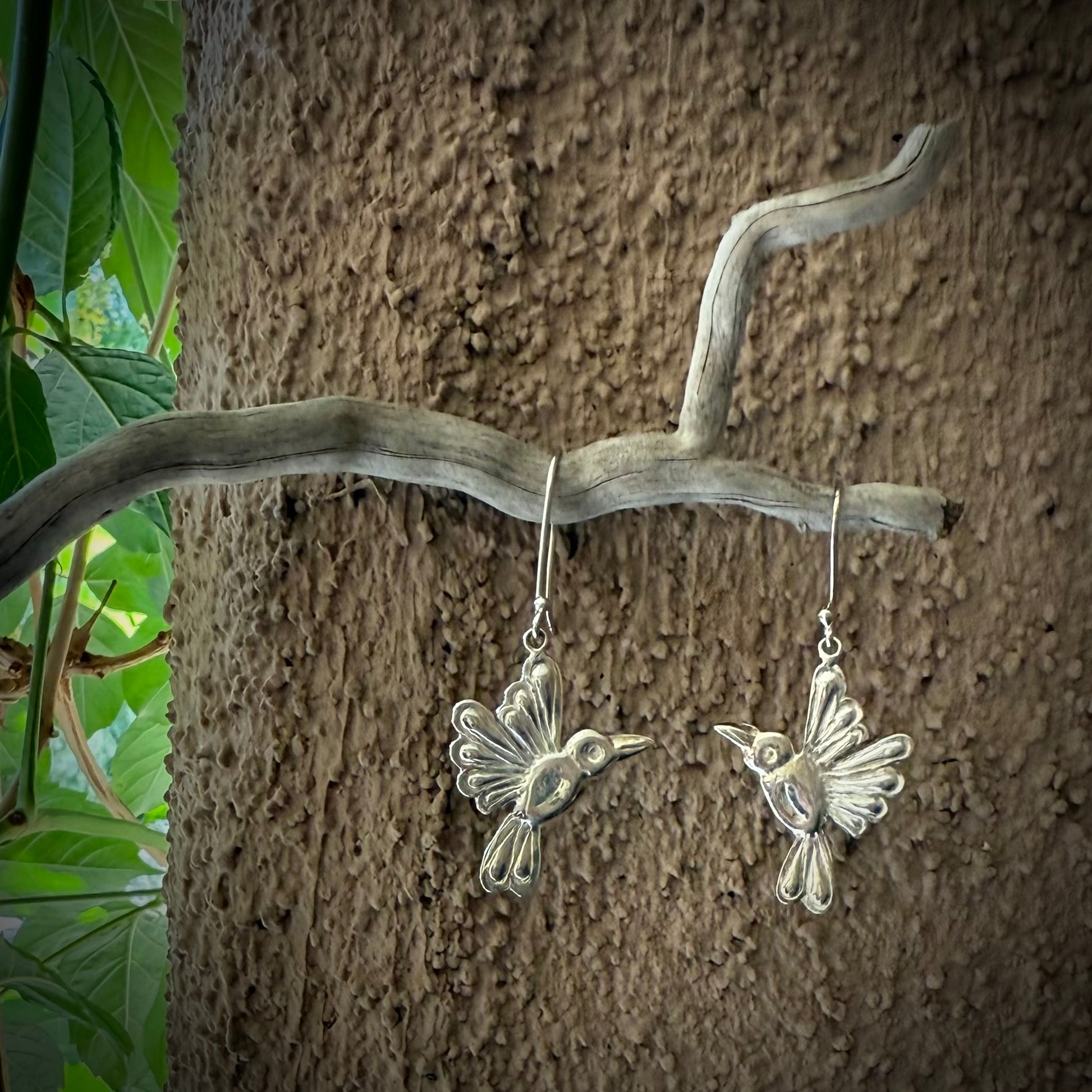 These graceful earrings celebrate the hummingbird, a revered symbol in Andean culture representing agility, energy, and joy. Handmade in La Paz, Bolivia, they feature fine details etched into sterling silver, sourced from Potosí.